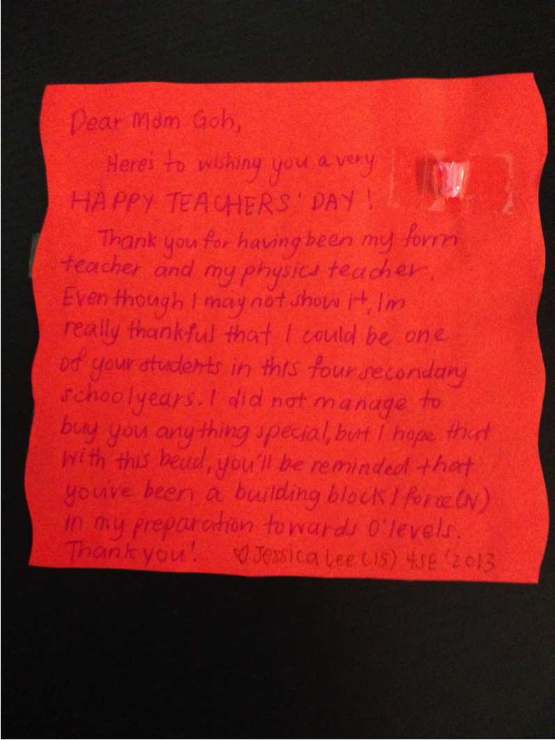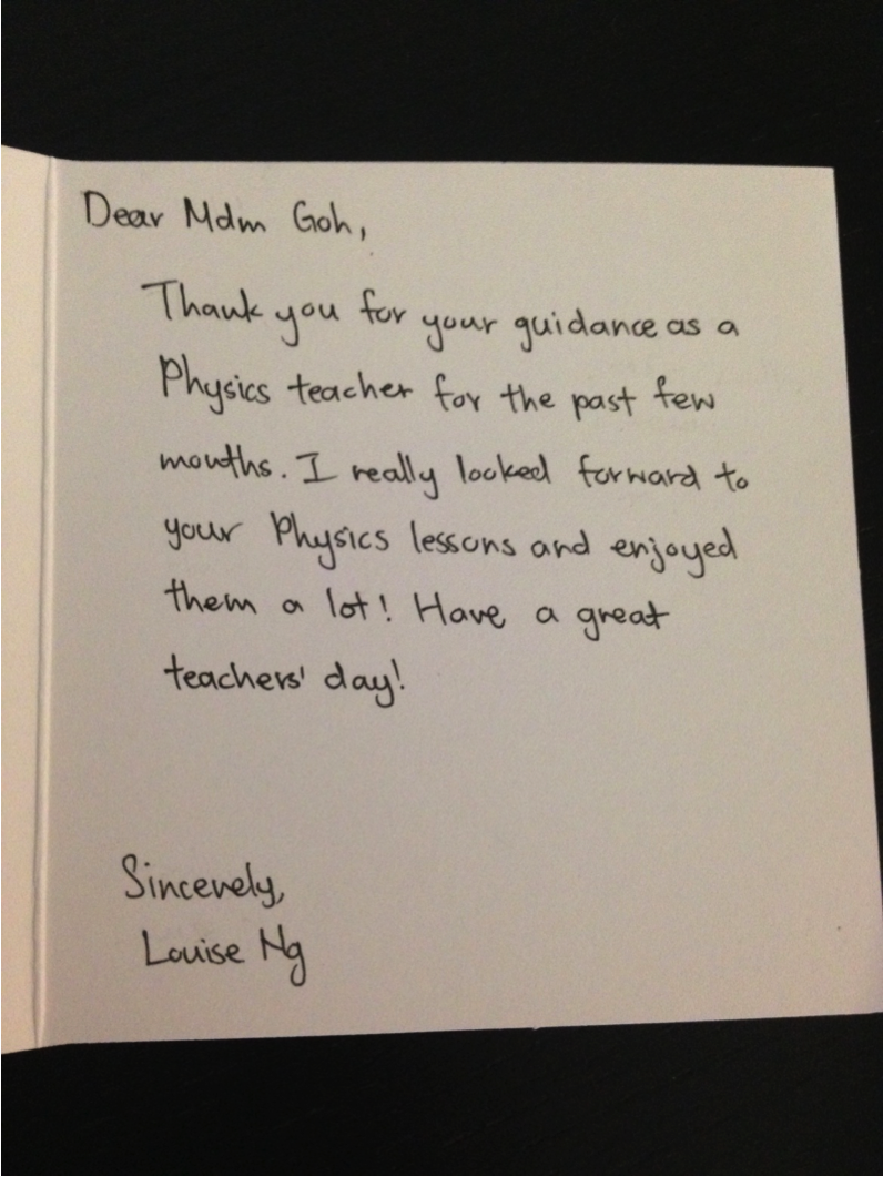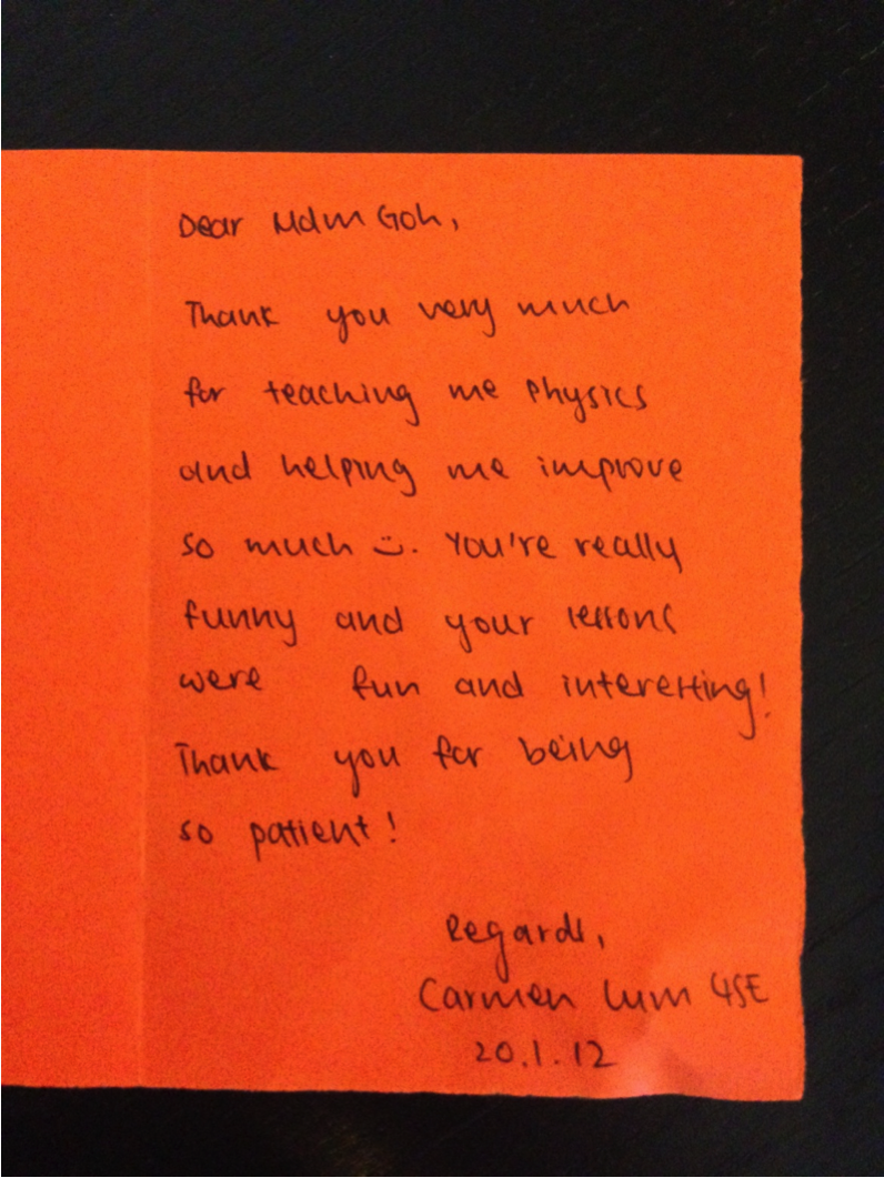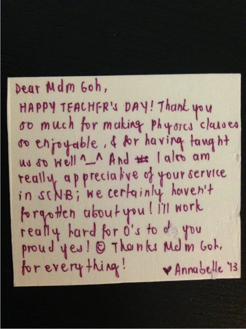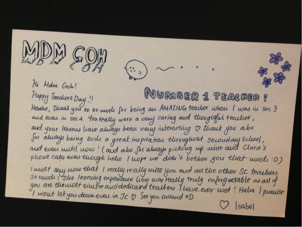 It has always been a joy for me to step in class and learn from the students as I try to impact and create their love and motivation for life and studies. As these students express their thankfulness, and there are many that are not publicized in this website, I would like to express my thankfulness to them for enriching my life. May their journey in life after secondary school days be continuously filled with zest and spontaneous laughter as they continue to soar and find their place in the society.